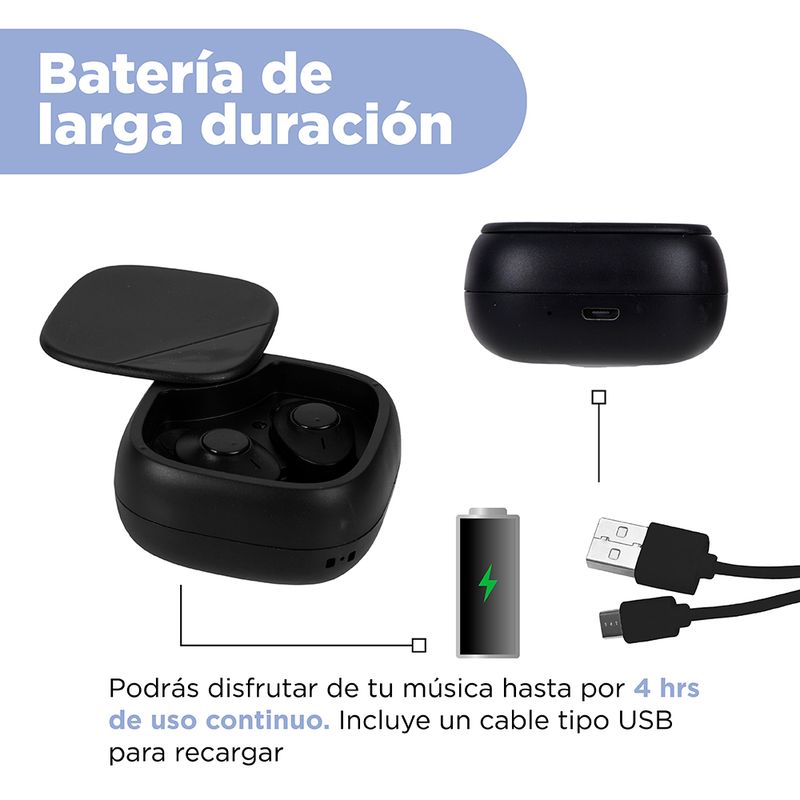 Audifonos Inalambricos, Tws Con Tapon De Rosca, M1 Negro, Con una duración de 6 horas. | Estuche con tapa giratoria. | Excelente calidad de sonido. | Con estuche para guardarlos y cargarlos. | Con micrófono. Instrucciones de uso: Consulte el manual del usuario. Use de acuerdo con las marcas L (audífono izquierdo) / R (audífono derecho) Precauciones y advertencias: No lo arrojes al fuego. No lo utilices durante mucho tiempo para evitar una mala influencia en tu audición. No lo utilices mientras conduces. Utilice el producto de acuerdo con las leyes y normativas locales. Los niños lo deben usar bajo supervisión de un adulto. Conservar en un lugar seco y fresco.