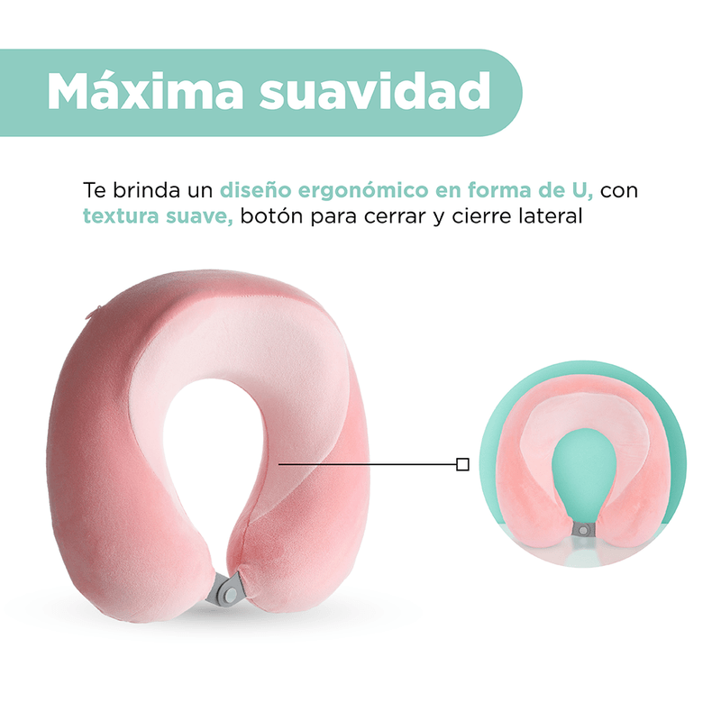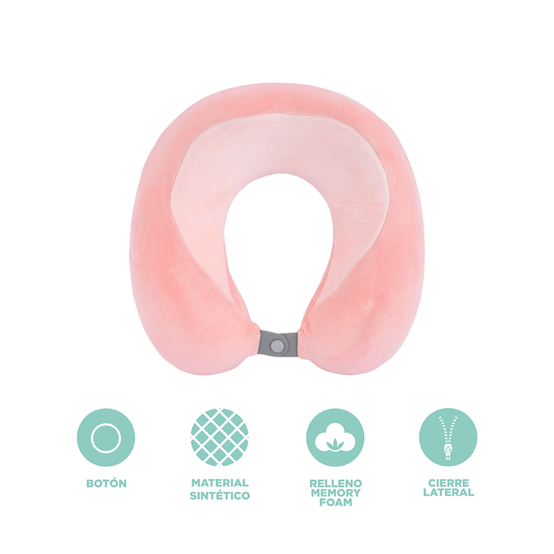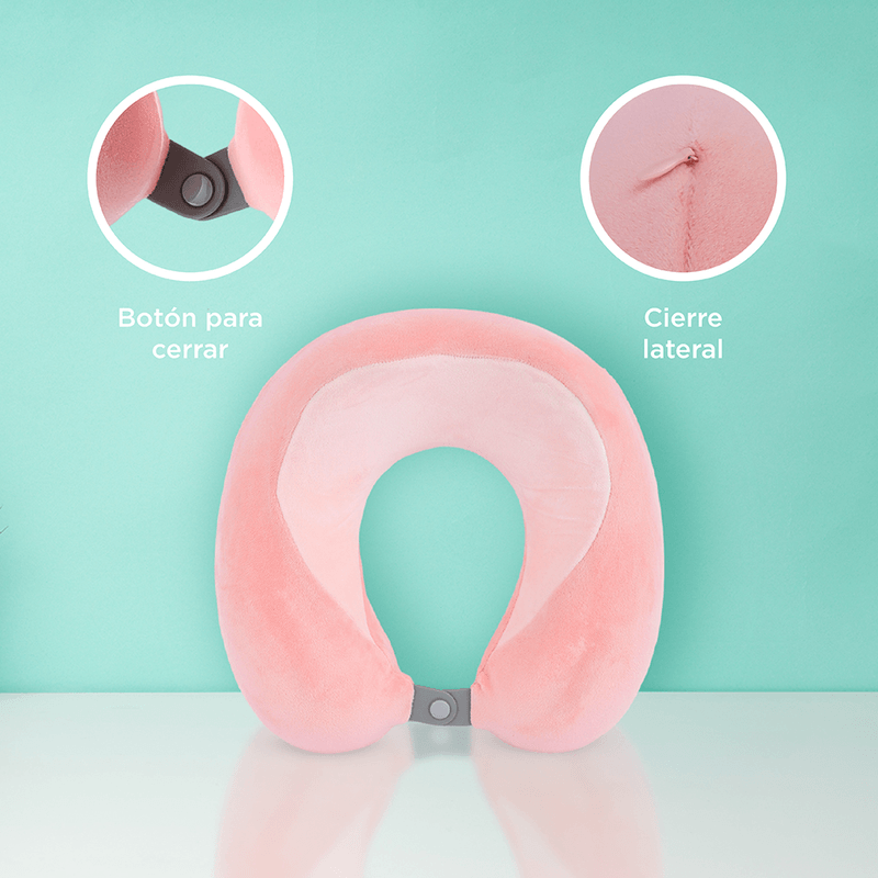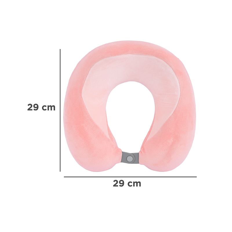 Miniso tiene para ti esta almohada de viaje de doble color Rosado, te ofrece un soporte 360° para tu cabeza y cuello, te otorga detalle de bordes curveados en la zona del cuello que te brindan mayor comodidad, sujeción y descanso ¡El accesorio perfecto que no debe faltar en tus viajes! | Diseñada ergonómicamente en forma de U para un soporte completo, esta confeccionada en tejido de punto con una textura aterciopelada que es gentil con tu piel, gracias a su relleno tipo memory foam se amolda perfectamente al recargarte en ella y regresando a su forma después de cada uso. Viene con detalle de botón en borde inferior que ayuda a evitar que la cabeza se empuje hacia adelante, ya que ajusta, da soporte y comodidad, es fácil de adaptar en tu maleta ¡Date el descanso que mereces! | No solo promueve la relajación de la cabeza y el cuello para dormir durante esos viajes largos, sino que también es ideal para leer un libro, descansar mientras estás en tu sofá o durmiendo por la noche. | Gracias a su diseño y tamaño de 29x29 cm puedes portarla en tu equipaje o bolso de manera practica y cómoda. | ¡Tenemos la almohada perfecta! Te ofrece comodidad, portabilidad y una experiencia mas placentera en todos tus viajes ¡Conviértela en el accesorios perfecto!