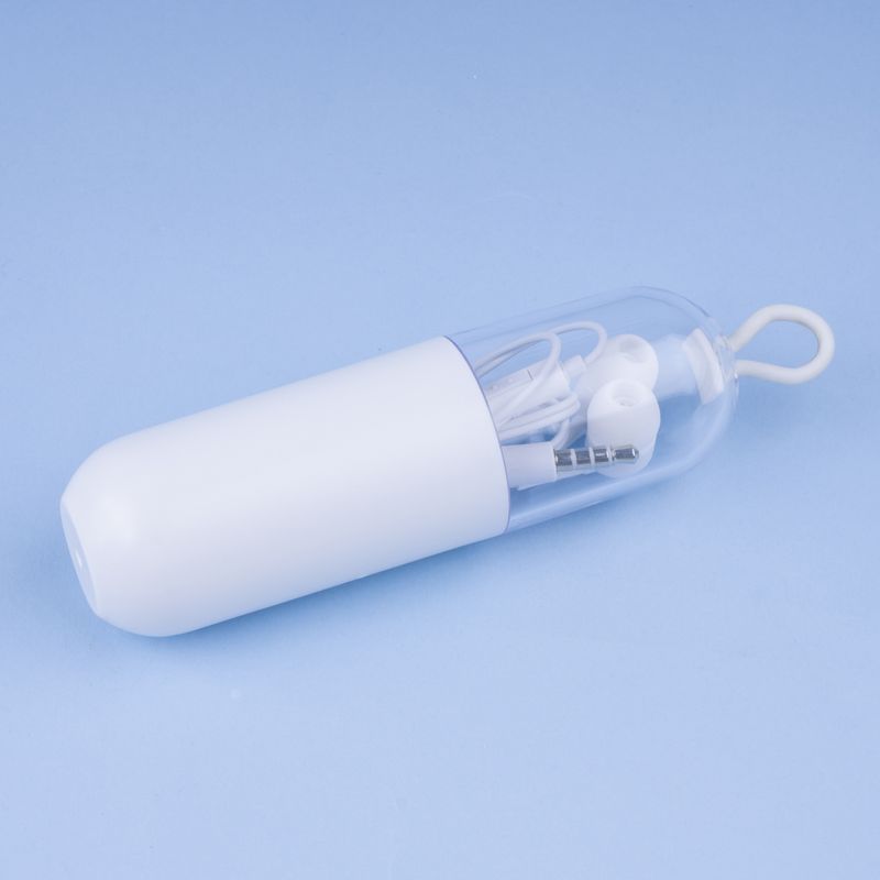 Audífonos de Cable con Estuche en Forma de Capsula Blanco