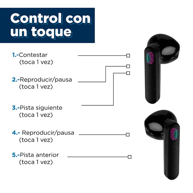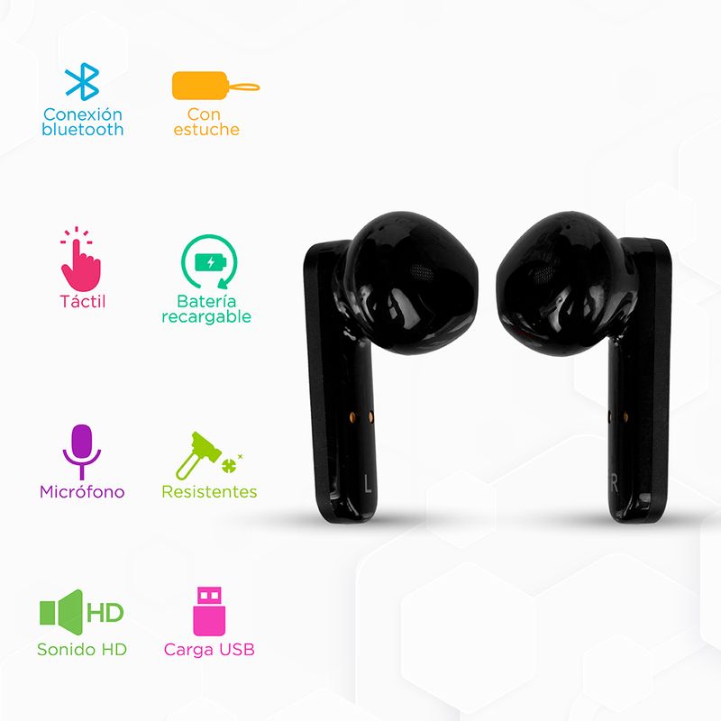 Audifonos Inalambrico, Tws Semi-In-Ear Modelo Ts16C, Negro, Minisounds Estos audífonos inalámbricos vienen con un lindo estuche en color negro. | Tiene un chip BT5.1 incorporado. | Admite el uso de auriculares izquierdo y derecho para reproducir música y recibir llamadas por separado. | Para operar al tacto simple y cómodo de usar. |Su diseño acogedor permite usarlo durante mucho tiempo sin lastimar el oído. Instrucciones de uso: