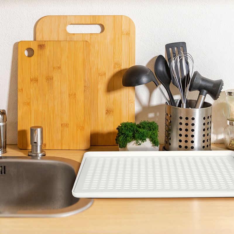 Adquiere esta bandeja de drenaje en color blanco. | Elaborada en plástico de alta resistencia y durabilidad. | Diseño desmontable y fácil de limpiar. | Ideal para escurrir los trastes y utensilios de cocina | Tamaño 29.6x18.6x2 cm. Modo de uso: No es necesario instalarlo, abrir el empaque y enjuagar con agua y usar. Mantener fuera del alcance de los niños.