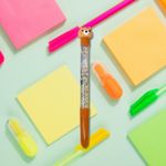 Adquiere esta linda pluma que Miniso tiene para ti. | Barril con brillantinas y detalle decorativo de oso. | Tinta azul. | Punta de 0.5 mm. | Te brinda una experiencia de escritura agradable y un diseño adorable. Instrucciones de uso: