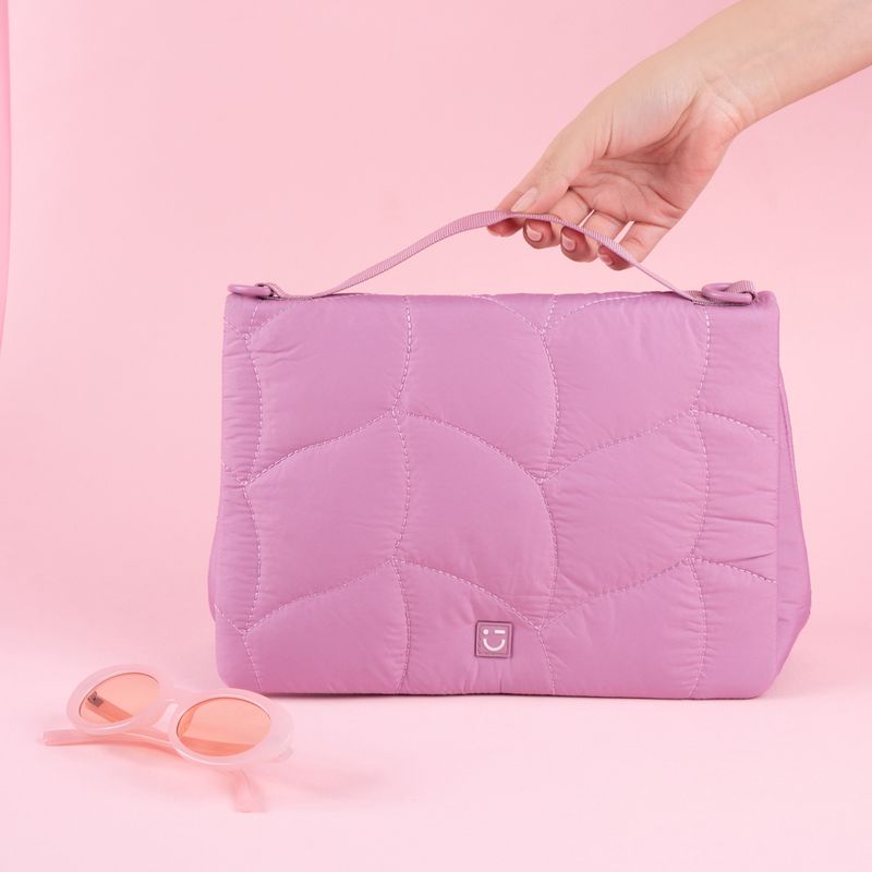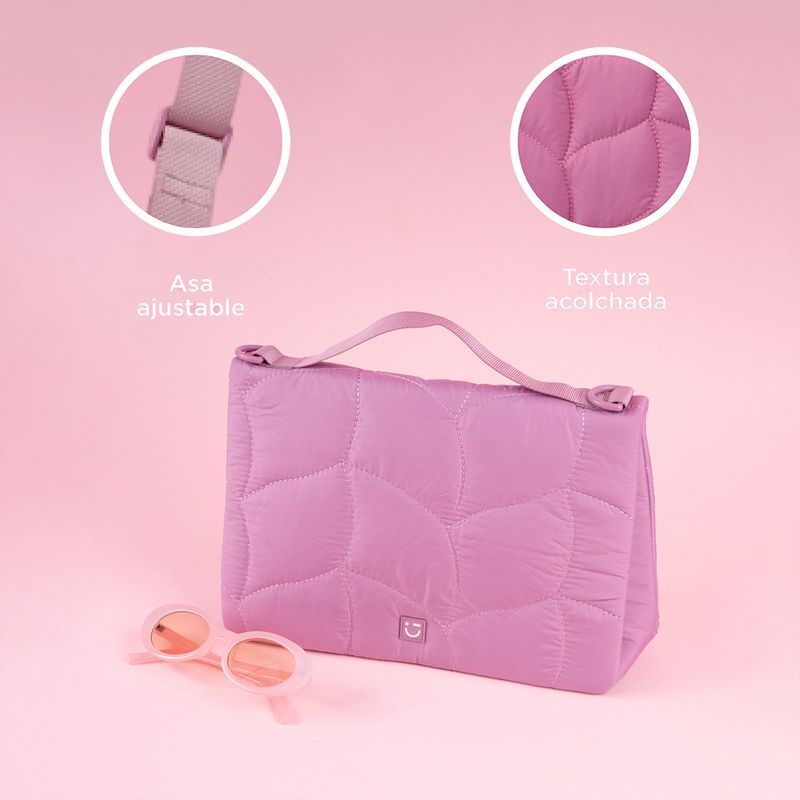 Miniso tiene para ti este lindo bolso tipo crossbody ¡Dale estilo a tu día a día! | Confeccionado en materiales textiles de alta resistencia y gran durabilidad. | Te otorga un lindo diseño acolchado en tonalidad rosa con detalle alusivo a la marca a contraste, correa ajustable, asa suave, compartimentos principales de cierre y bolsillo al frente ¡Los mejores bolsos y el mejor estilo solo lo encuentras aquí en Miniso! | Tamaño 25x20x7 cm. Ligero y fácil de portar. | ¡Conviértelo en el accesorio perfecto para tu guardarropas! ¡Ideal para toda ocasión!.