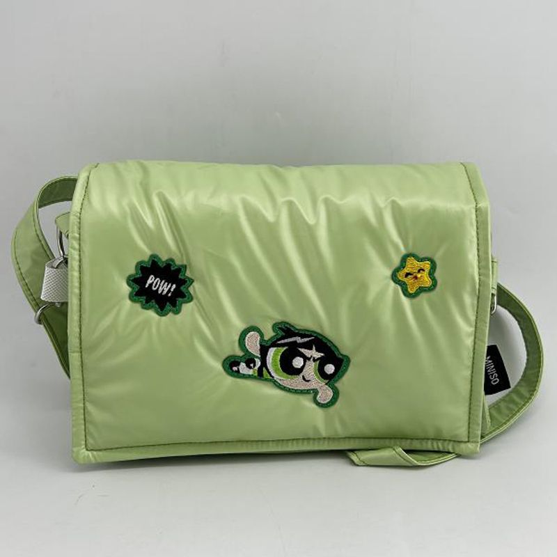 ¡Azúcar, flores y muchos colores son los ingredientes perfectos que encontraras en Miniso para combatir el crimen y las fuerzas del mal! Prepárate para desatar tu poder interior con la fuerza de Bellota, el liderazgo de Bombón y la ternura de Burbuja ¡Es momento de que dejes que tus ultra superpoderes brillen! | ¡Adquiere este lindo bolso crossbody de Bellota! Confeccionado en poliéster de alta resistencia y gran durabilidad ¡No sabias que la necesitabas hasta que la encontraste aquí! | Te otorga un diseño acolchado en tonalidad verde con detalles bordados a contraste y correa para un uso cómodo ¡Los mejores bolsos y el mejor estilo solo lo encuentras aquí en Miniso! | Tamaño 22x9x16 cm. Ligero y fácil de portar. | ¡Conviértelo en el accesorio perfecto para tu guardarropas! ¡Ideal para toda ocasión!.
