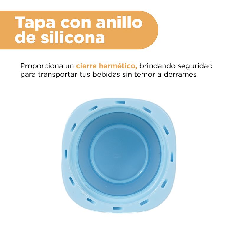 Temperatura adecuada para el vaso: 0°C - 50°C. Diseñado para agua o bebidas frías. No lo utilice para bebidas calientes. No apto para microondas, lavavajillas y horno. No esterilice con agua hirviendo o vapor, para evitar desfigurar la botella. No lo utilices para almacenar o transportar bebidas carbonatadas, cerveza o alimentos que contengan más del 13% de alcohol. Producto de plástico, manipular con cuidado. Mantener alejado del fuego y del calor. Guardar en lugar fresco y seco. Los niños lo deben usar bajo supervisión de un adulto. Evite golpes.