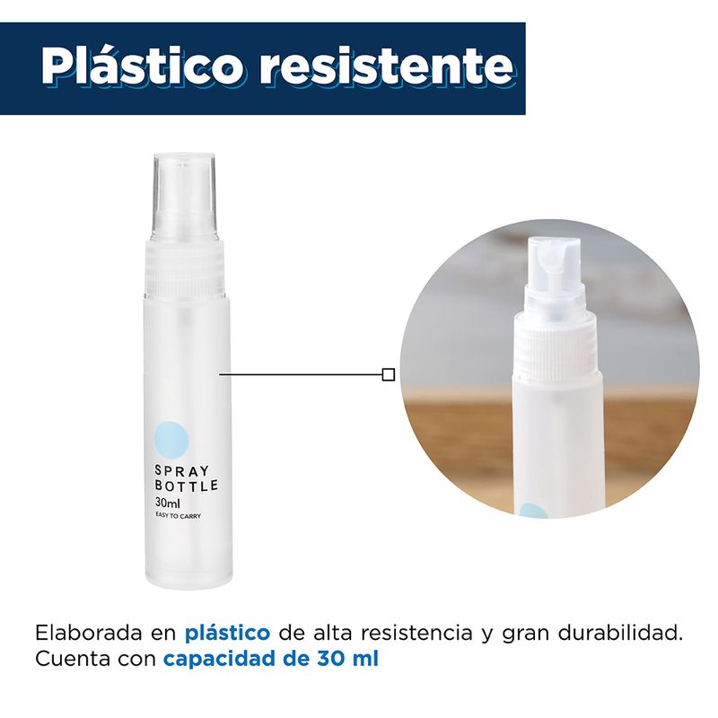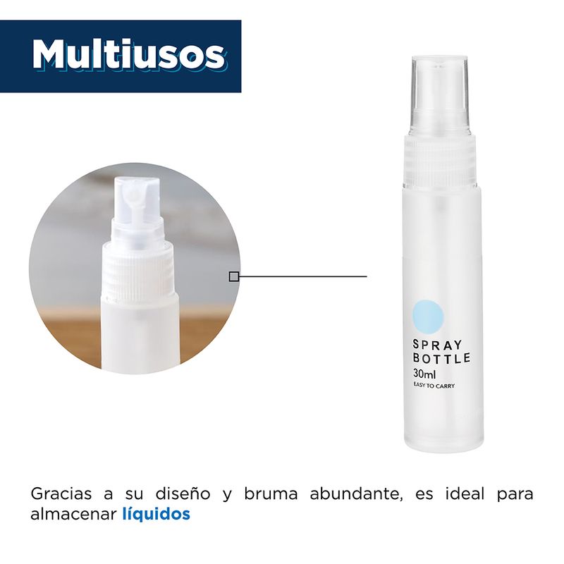 Botella de viaje 30 ml. Diseño portátil, ideal para almacenar productos de cuidado personal como jabón de baño y shampoo. Instrucciones de uso: