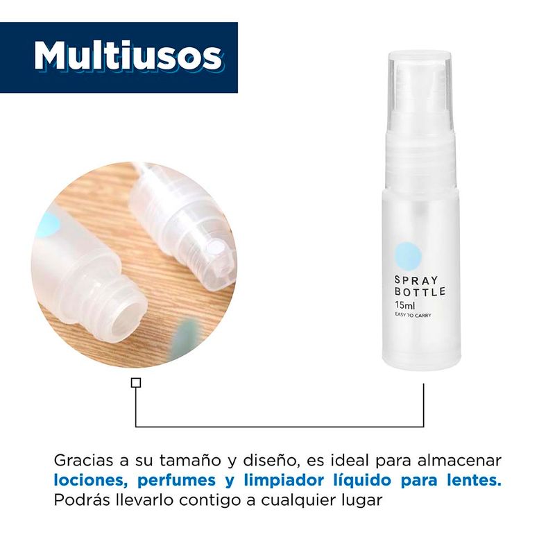 Antideslizante con diseño esmerilado Produce una niebla fina, práctica e higiénica Diseño en espiral de cuello de botella, a prueba de fugas. Portátil, se puede llevar en avión. Modo de uso: