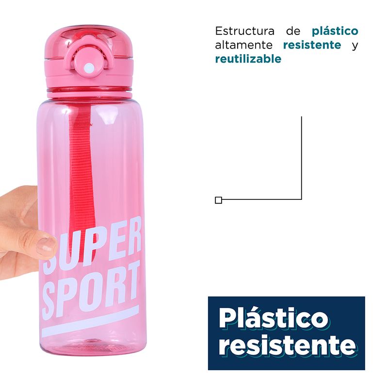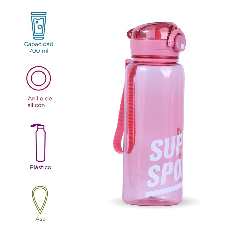 Botella Tritan, Con Correa, 700 Ml, Rojo, Hecho de tritan, material resistente y duradero. | Se abre con un solo botón. | La botella ligera es cómoda de llevar. | Capacidad de 700 ml. | Varios colores disponibles. Instrucciones de uso: