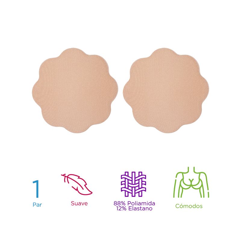 Brasier Ahesivo Beige 8 cm 2 Piezas, Tamaño de la circunferencia: 8 cm. | Incluidas 2 piezas. | Color neutro. | Reutilizables. | Hechos de silicón resistente y duradero., Pégalos sobre tus senos. Instrucciones de uso: