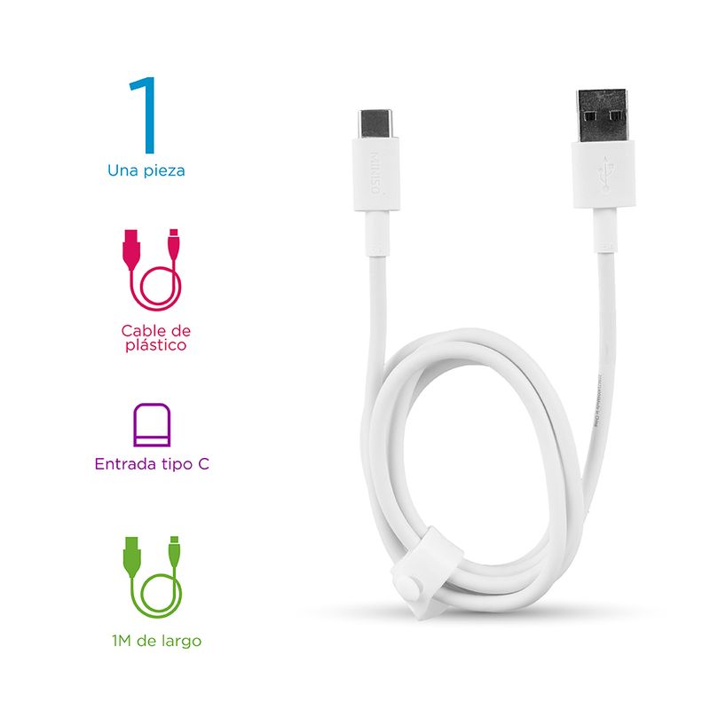 Cable De Carga Rapida, Tipo C, 5A Blanco, 1 Mt, Hecho de TPE ecológico. | Diseño elegante y simple. | El cable firme no es fácil de romper y fácil de doblar o tirar. | De carga rápida. | Longitud de 1 metro. Instrucciones de uso: