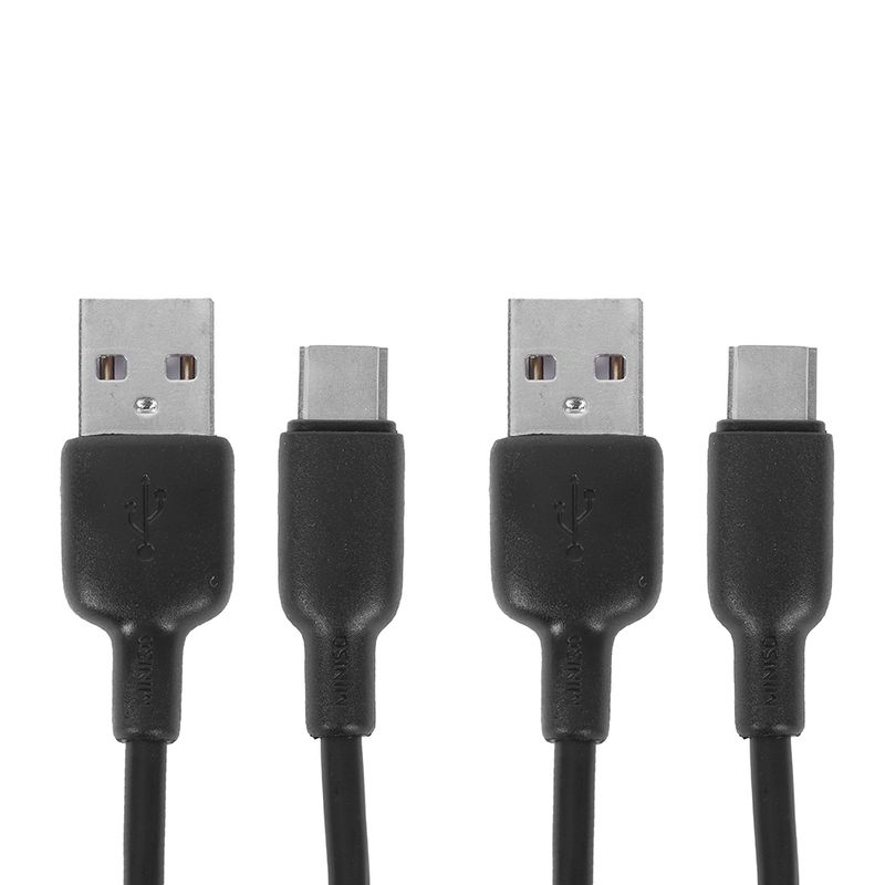 Miniso tiene para ti este set de cables para carga USB a tipo C. | Estos cables te ofrece dos funcionalidades de carga y transmisión de datos. Conéctalos a un adaptador para cargar el celular o a una entrada USB en la PC o laptop para sincronizar tus datos; transfiere archivos, fotos y videos desde tu dispositivo de manera fácil y rápida. Tienen una longitud de 1 metro cada uno. | Diseño minimalista y compacto, fácil de almacenar. | Cable flexible reforzado en plástico lo que te otorga máxima durabilidad con una potencia máxima de 18 W. | Compatible con la mayoría de dispositivos móviles. Instrucciones de uso: