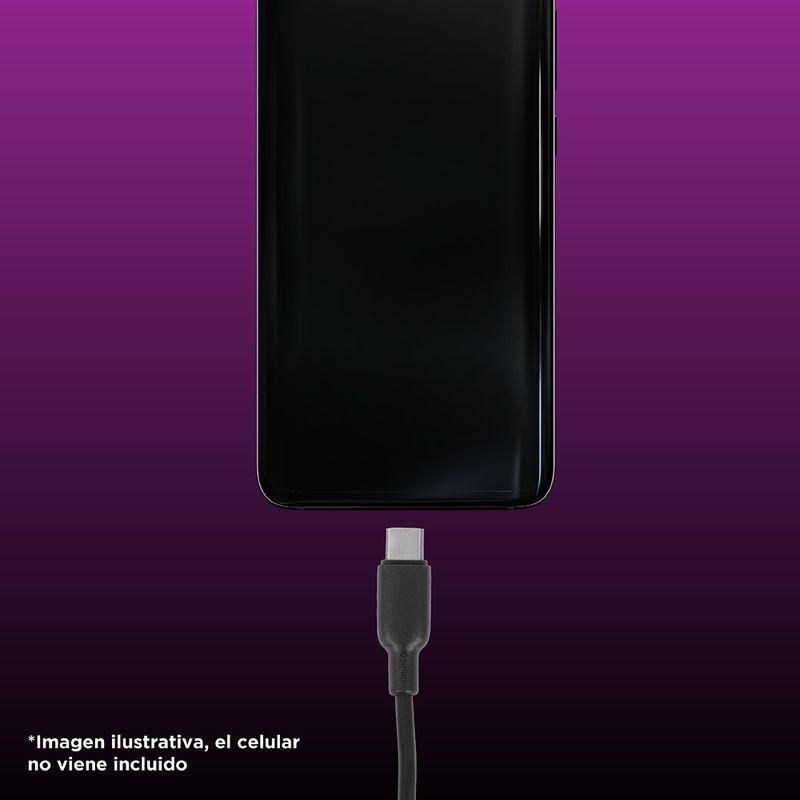 Cargar o transmitir fecha para celular con puerto Tipo-C. Alinee la costura del cable con el puerto de su dispositivo, luego conéctelo. Voltaje nominal: DC 5V; máx. corriente de trabajo: 3A. Úselo con un cabezal de carga y un dispositivo móvil compatibles.