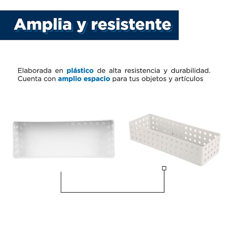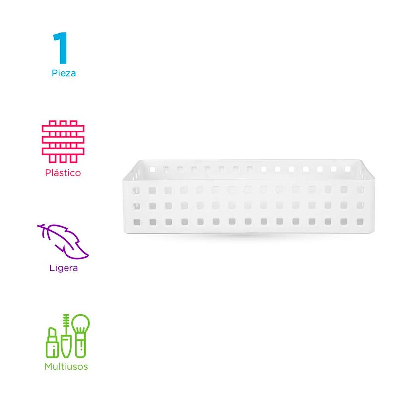 Mantén tus artículos personales en un mismo lugar y sin extraviar nada con la Caja De Almacenamiento Apilable . Ideal para para almacenar diferentes artículos en ella. Su amplio espacio y materiales resistentes la hacen ideal para llevar lo que se te ocurra en su amplio interior. |Espaciosa: Su gran tamaño te permitirá almacenar varios artículos y tener un mejor orden de ella. |Diseño moderno: Cuenta con un diseño funcional y viene en color blanco para que puedas tener un mejor control de su interior. |Resistente: Creada en plástico para que puedas cargarla a todos lados con sus prácticas asas y sin preocuparte por dañarla, ya que cumple con los más estrictos estándares de calidad. |Multiusos: Guarda en ella lo que se te antoje y dale mayor orden a tus artículos y espacios. Modo de uso: Caja multiusos.
