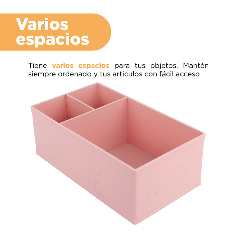 Mantenga lejos de fuentes de calor. Instrucciones de uso: Use para almacenar y organizar los objetos de preferencia. Precauciones y advertencias: Evite golpes. Evite rayar con objetos duros. Evite la luz solar directa y el contacto con altas temperaturas. Guardar en lugar fresco y seco. Los niños la deben usar bajo supervisión de un adulto.