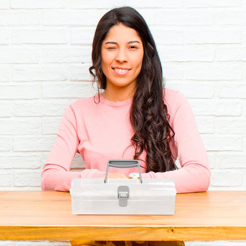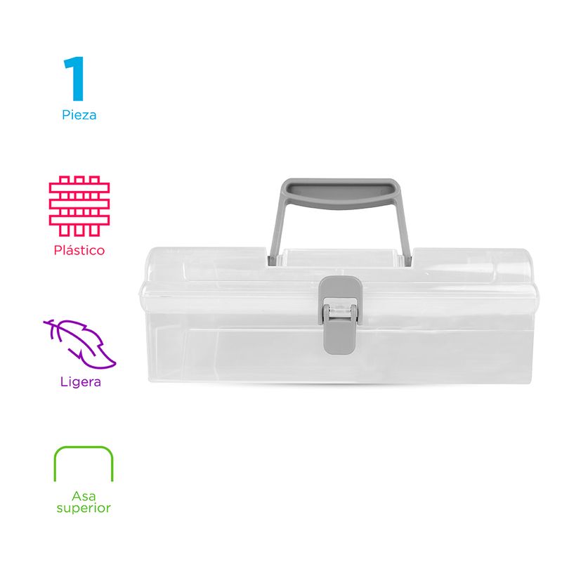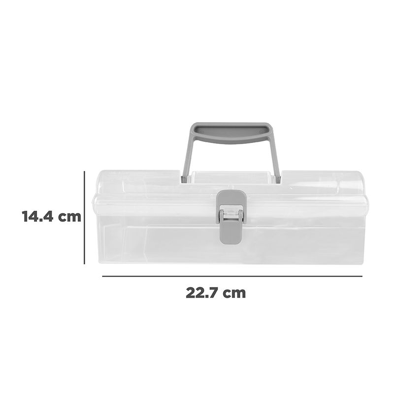 Caja De Almacenamiento, Larga Con Asa Y Tapa Abatible , Tamaño: 22.7X14.4X8.3cm. | Forma rectangular. | Con tapa, broche y asa. | Transparente. |Hecha de plástico resistente y duradero. Modo de uso: Caja multiusos.