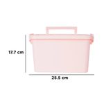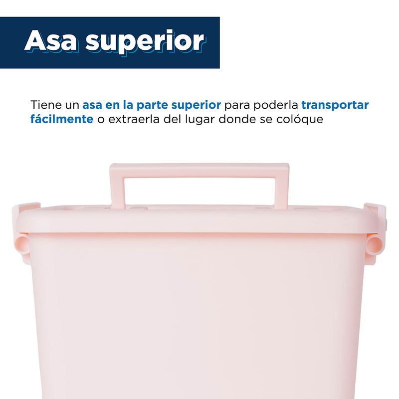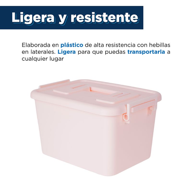 Caja De Almacenamiento, Mediana, Rosa Hecho de plástico resistente. | Con tapa con asa superior. | Color rosa. | Ideal para guardar una variedad de productos. Guarda y organiza tus pertenencias. Modo de uso: Caja multiusos. Precauciones: Mantener lejos del fuego. Frágil, manipular con cuidado. Evitar que se caiga o se golpee. No exponerla a la luz del sol por tiempo prolongado. Los niños lo deben usar bajo supervisión de un adulto.