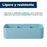 Caja de almacenamiento en color azul. | Esta caja viene en forma rectangular con 3 compartimentos. | Tamaño 26.9x14.3x7.3 cm. | Elaborado en materiales resistentes y duraderos. | Ideal para almacenar todo tipo de objetos. Modo de uso: Almacena gran variedad de artículos