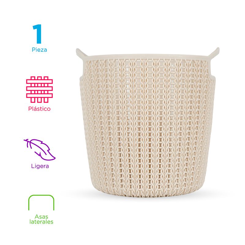 Caja De Almacenamiento Redondo, Trenzado, Pequeña, Khaki - Miniso
