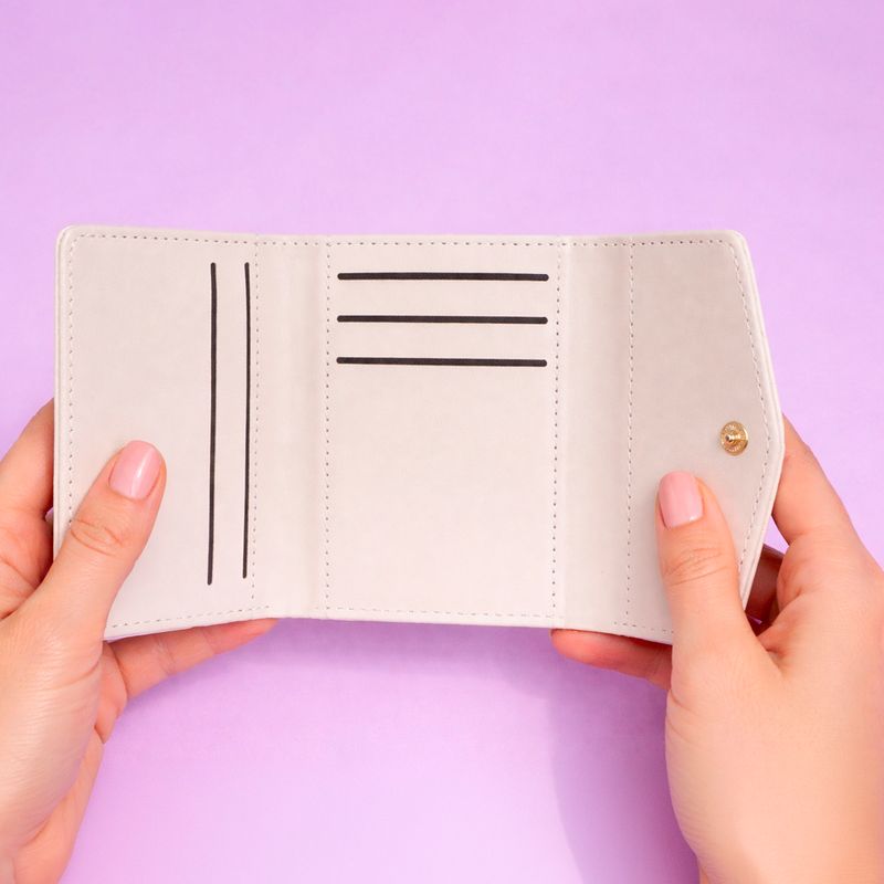 Miniso trae para ti esta linda Cartera Corta para Mujer Tipo Piel de Cocodrilo Glossy Beige.