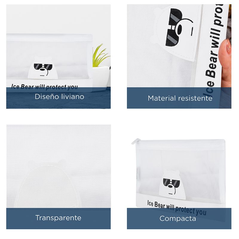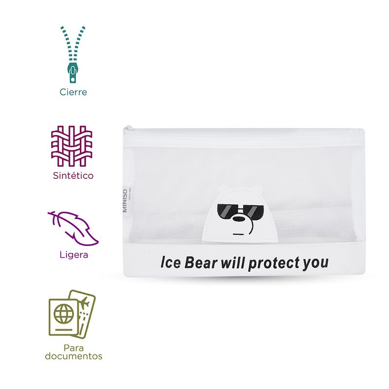1. Diseño único de We Bare Bears 2. Tamaño A6, se puede utilizar para almacenar muchos tipos de documentos 3. Viene con asa, conveniente y fácil de viajar. Modo de uso: Usar para guardar folios. Precauciones: Mantener lejos de fuentes de calor. No morder. Los niños la deben usar bajo supervisión de un adulto. No acercar a objetos afilados.