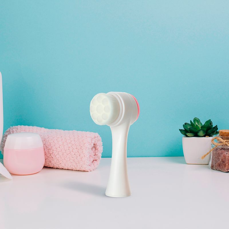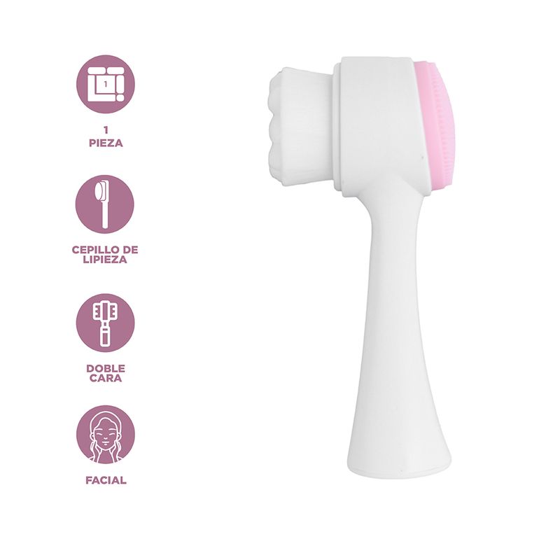 Cepillo de doble cabeza. Incluye un cabezal de cerdas suaves y uno de silicón para una limpieza profunda. Masajeará suavemente la piel y limpiará sus poros para dejar una piel fresca. Medidas: 9.6 x 4.9 x 5 cm.