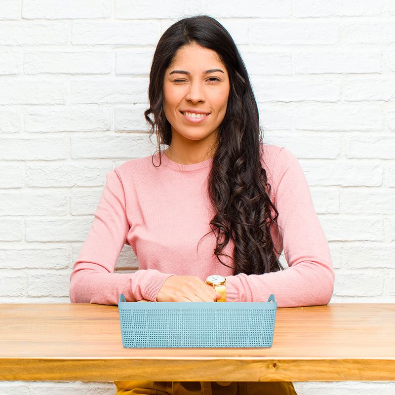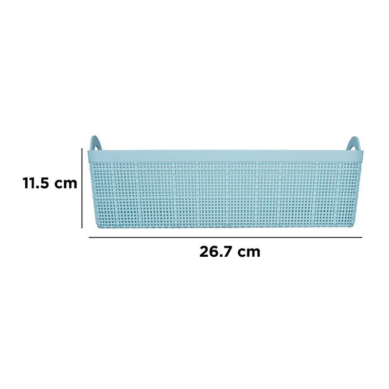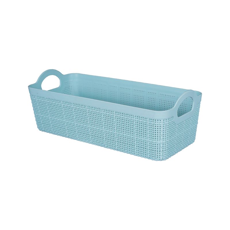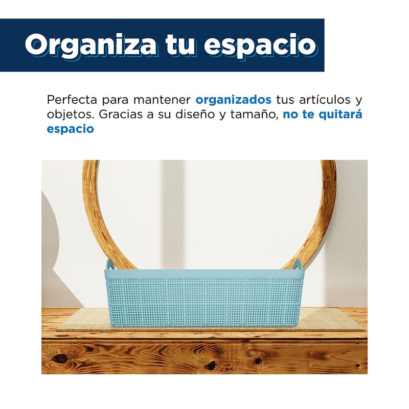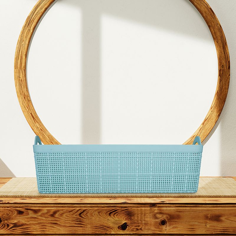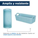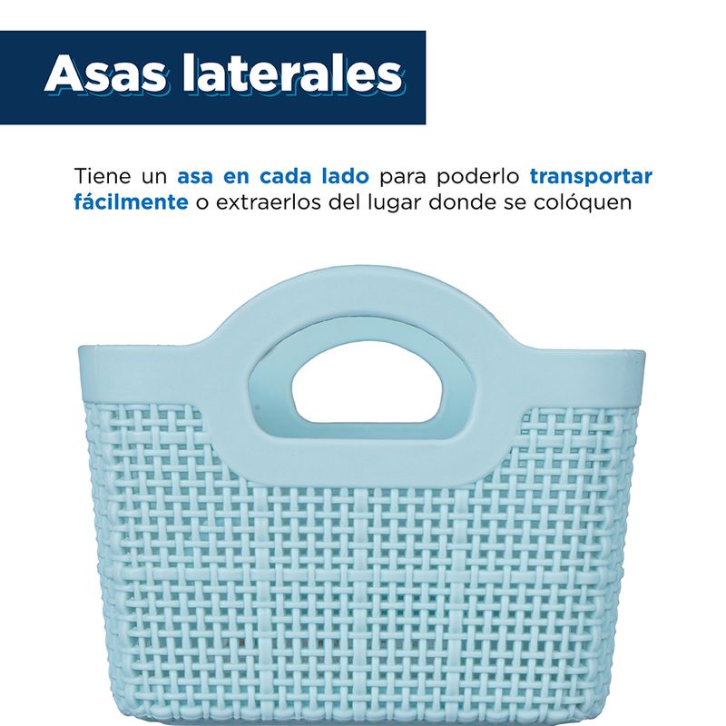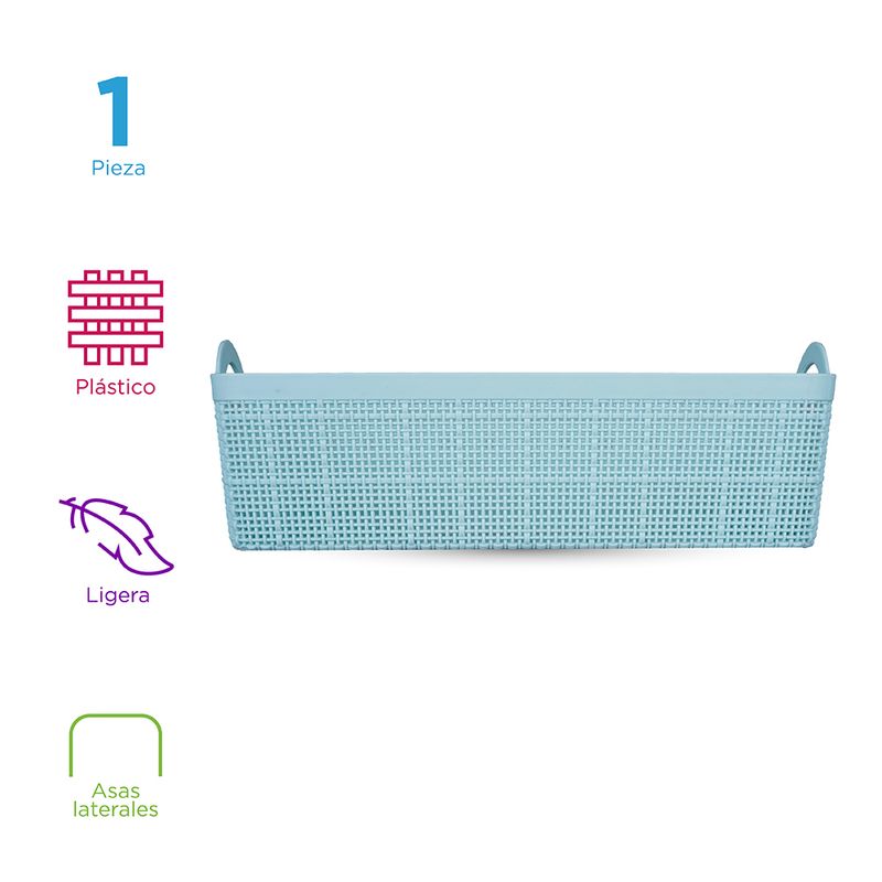 Cesto De Almacenamiento Rectangular, Mango Con Trenzado Cesto de almacenamiento en color verde. | Elaborado en material sintético de alta resistencia. | Forma rectangular con diseño trenzado. |Asas en costados. Modo de uso: Multiusos.