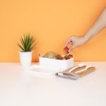 Precauciones y advertencias: Temperatura adecuada: caja (0 ? - 100 ?), tapa (0 ? - 70 ?). El producto sin tapa se puede colocar en el microondas y en el lavavajillas, pero no se puede colocar en el horno.