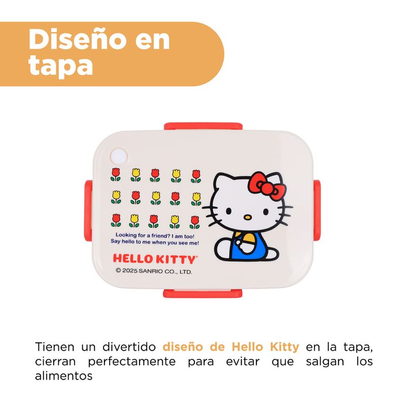 ¡Solo en Miniso encontraras los mejores artículos de la entrañable colección de Sanrio! Adquiere este lindo y exclusivo contenedor de alimentos de 3 compartimientos con una capacidad de 1200 ml de la dulce y amable Kitty ¡Los mejores accesorios solo los encuentras aquí! | Elaborado en materiales de alta resistencia. | Te otorga un lindo diseño con detalles estampados a contraste. ¡Dale el uso que requieras! | ¡Ligero y fácil de portar!