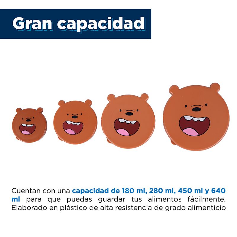 Contenedor de Alimentos Serie Osos Escandalosos Pardo 4 Pzas Café