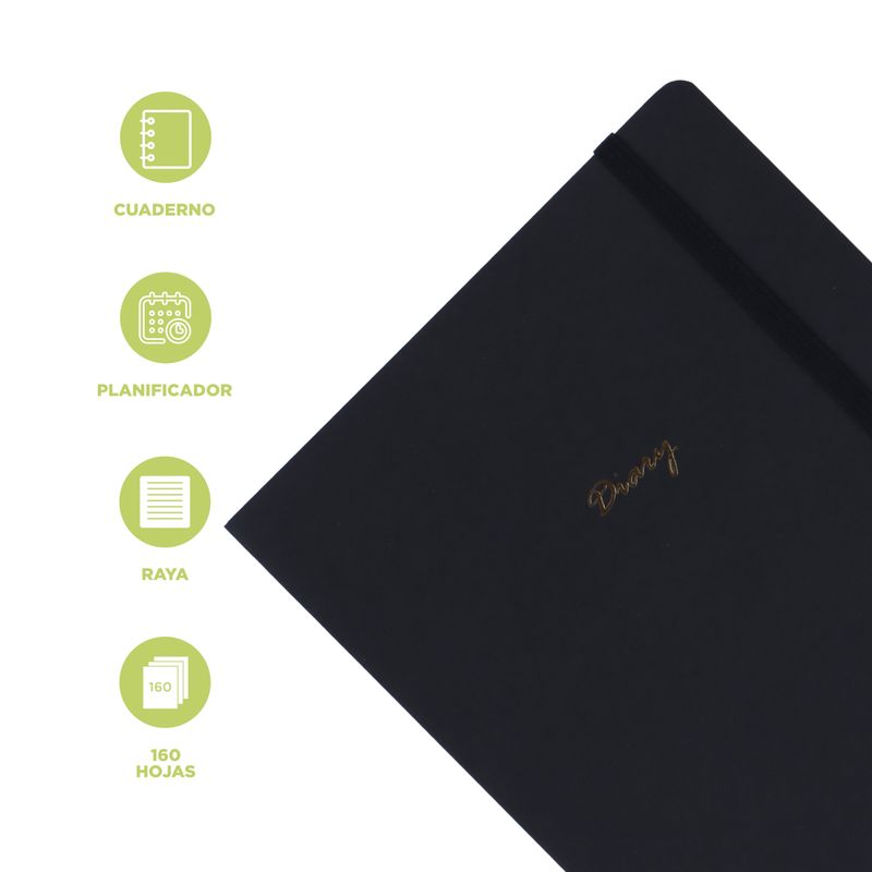 Cuaderno Estampado con Plan Mensual Negro 160 Hojas