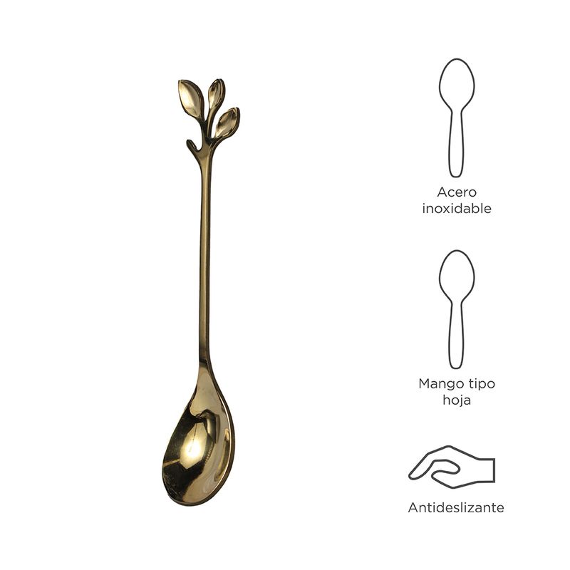 Cuchara De Cafe En Forma De Hoja Dorado