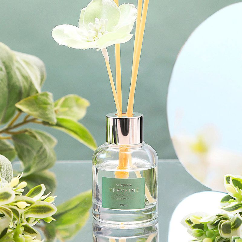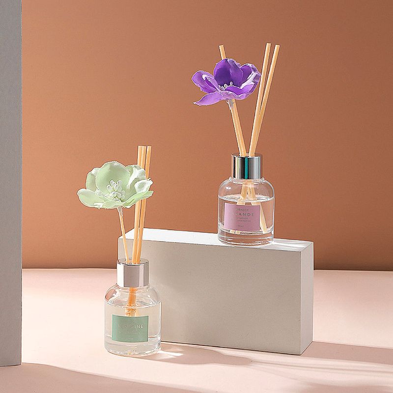 Abre la tapa de la botella de vidrio e introduce en ella los palitos de fibra. Coloque la botella sobre la superficie plana. La densidad del aroma varía según su tipo, el número de varillas de fibra y la temperatura ambiente. No lo incline. Después de un período de tiempo, puedes darle la vuelta a las varillas de fibra para conservar el aroma.