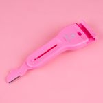 Rizador de pestañas y afeitadora de cejas 2 en 1, diseño retráctil, agarre cómodo.