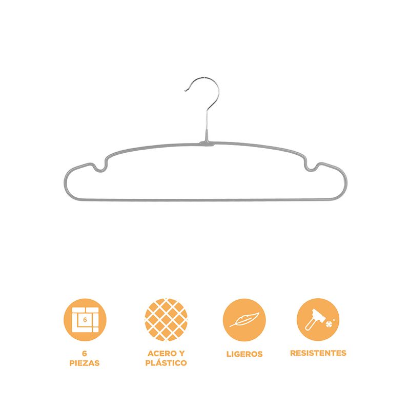 HogarLavanderiaGanchos Para Ropa Mate Anti-Deslizantes Xl Gris 6 Pzas