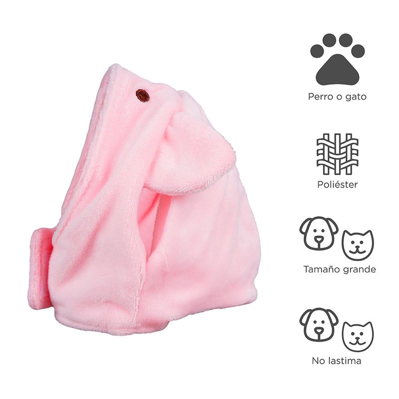 Adquiere este gorro para mascotas con diseño de cerdito. | Este gorro esta confeccionado en materiales suaves con textura afelpada, detalles bordados a contraste y cinta de velcro para ajustar. | Tamaño 10x15 cm y medidas de cuello 30x40 cm. | Este gorro es ideal para mascotas grandes. | ¡En Miniso nos encanta que los consentidos de la casa se vean adorables! Modo de uso: Usar para vestir mascotas. Precauciones: Mantener lejos de fuentes de calor. Solo para mascotas. No es un juguete. Mantener fuera del alcance de los niños.