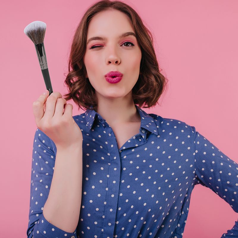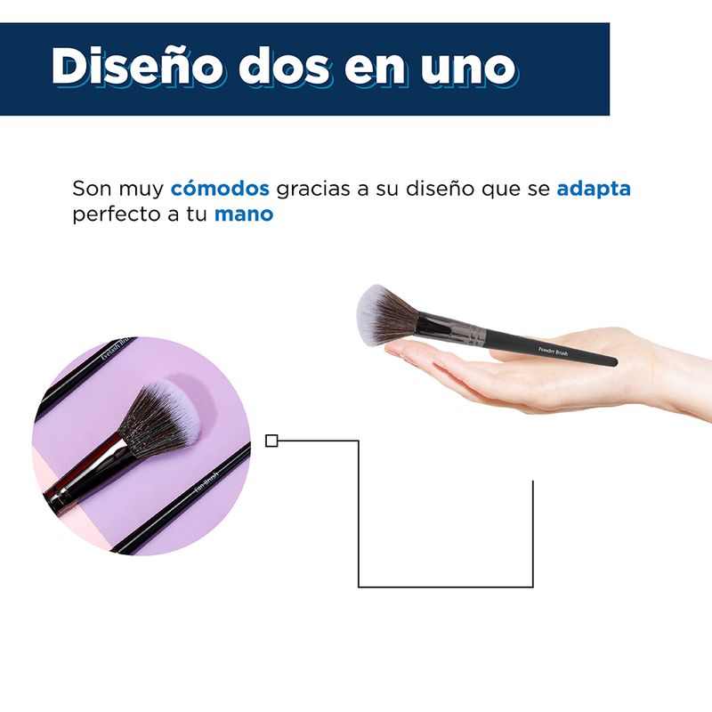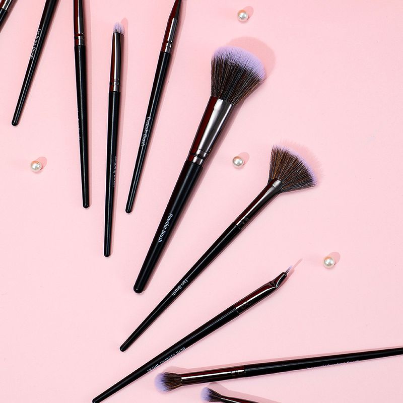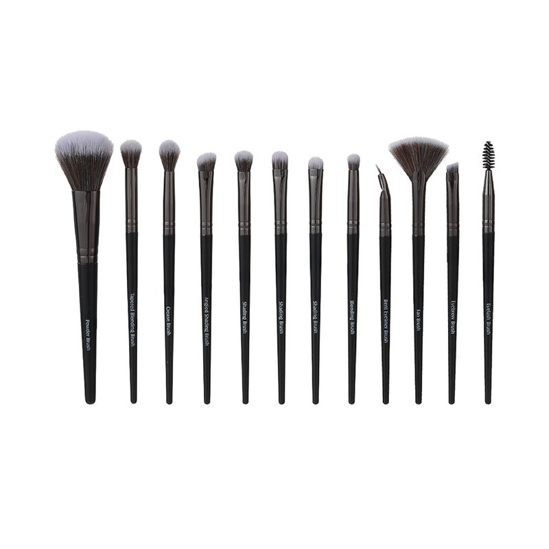 Brocha para polvos sueltos: se utiliza para aplicar polvos en áreas grandes. Pincel de sombreado doblado: profundiza la cuenca del ojo. Pincel delineador de ojos doblado: diseño doblado para dibujar mejor el delineador de ojos. Brocha para difuminar cónica: se utiliza para difuminar alrededor del área de los ojos, también se puede usar para resaltar y sombrar la nariz. Brocha para pliegues: se usa para difuminar alrededor del área de los ojos, también se puede usar para resaltar y sombrar la nariz. Cepillo para cejas en ángulo: se puede utilizar con polvos para cejas para obtener una excelente forma de cejas. Cepillo de pestañas: Se utiliza para cepillar las cejas o eliminar el exceso de rímel. Pincel de sombreado en ángulo: profundiza la cuenca del ojo. Brocha para sombrear: se puede utilizar para difuminar las arrugas de los párpados. Brocha para difuminar: se utiliza para difuminar alrededor del área de los ojos, también se puede usar para resaltar y sombrar la nariz. Brocha para difuminar: se usa para resaltar el párpado y debajo del párpado inferior, se puede usar para mezclar la esquina interna y externa del ojo y hace que el maquillaje de ojos sea más delicado. Brocha abanico: se utiliza para resaltar los pómulos o aplicar rubor.