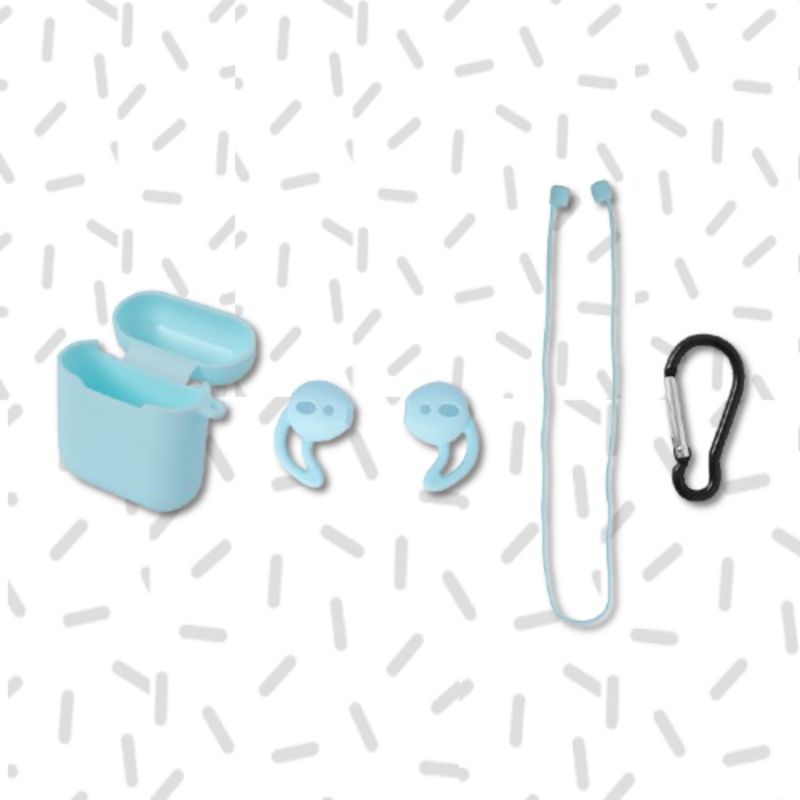 Miniso tiene para ti esta funda protectora para AirPods en color verde aqua. | Elaborada en silicona de alta resistencia. | Incluye 2 protectores para AirPods, una correa para ajustarlos y detalle de gancho metálico para colgar. | Tamaño 6x6 cm. | Almacena y transporta de manera cómoda tus AirPods en este practico estuche. Modo de uso: Almacenar y transportar de manera cómoda los auriculares. Precauciones: Evitar arañazos o pinchazos con objetos duros. No tirar de él con demasiada fuerza. Mantener fuera del alcance de los niños. Modo de uso: Almacenar y transportar de manera cómoda los auriculares. Precauciones: Evitar arañazos o pinchazos con objetos duros. No tirar de él con demasiada fuerza. Mantener fuera del alcance de los niños