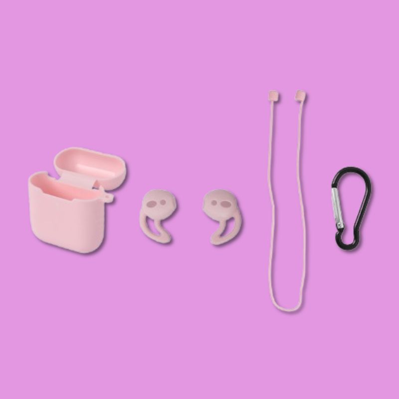 Miniso tiene para ti esta funda protectora para AirPods en color rosa. | Elaborada en silicona de alta resistencia. | Incluye 2 protectores para AirPods, una correa para ajustarlos y detalle de gancho metálico para colgar. | Tamaño 6x6 cm. | Almacena y transporta de manera cómoda tus AirPods en este practico estuche.