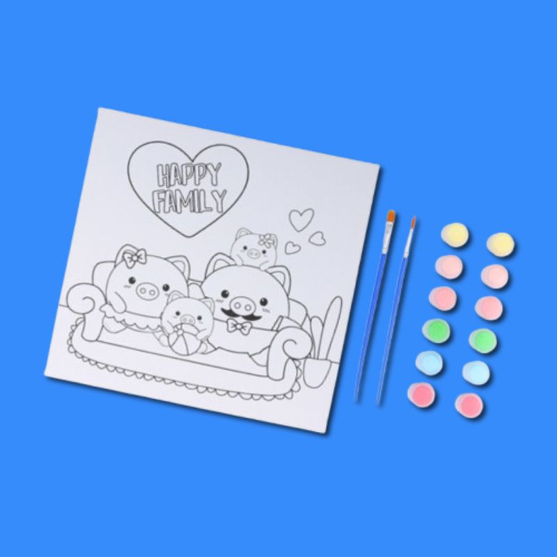 ¡Miniso tiene para ti este lindo kit de pintura! | Te ofrece un lienzo para pintar con diseño de "Familia de cerditos". | Tamaño 25x25 cm. | Incluye 2 pinceles y 14 pinturas con 2 ml cada una. | Estimula la creatividad y la imaginación de los mas pequeños ¡Pasaran horas de diversión! Advertencias y precauciones:
