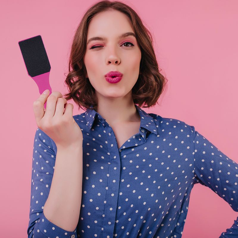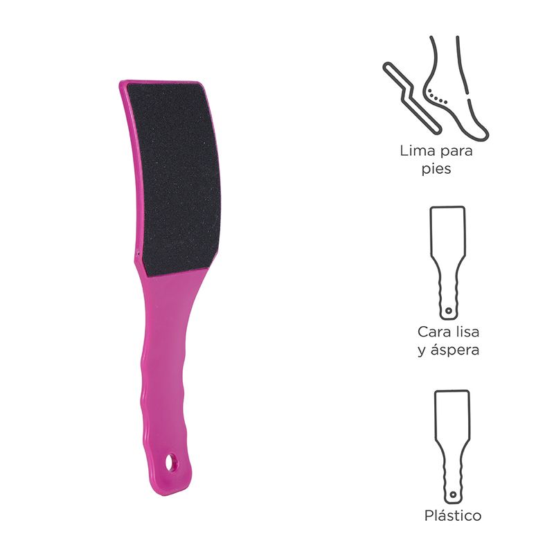 Lima Para Pies Doble, Amplio, Suave y Aspero Lima para pies con doble cara suave y áspera. | En color rosa. | Remoja tus pies en agua tibia durante 15 a 20 minutos antes de usarlo. | Elimina fácilmente la piel muerta. | Mantén tus pies suaves y dales el apapacho que merecen. Modo de uso: