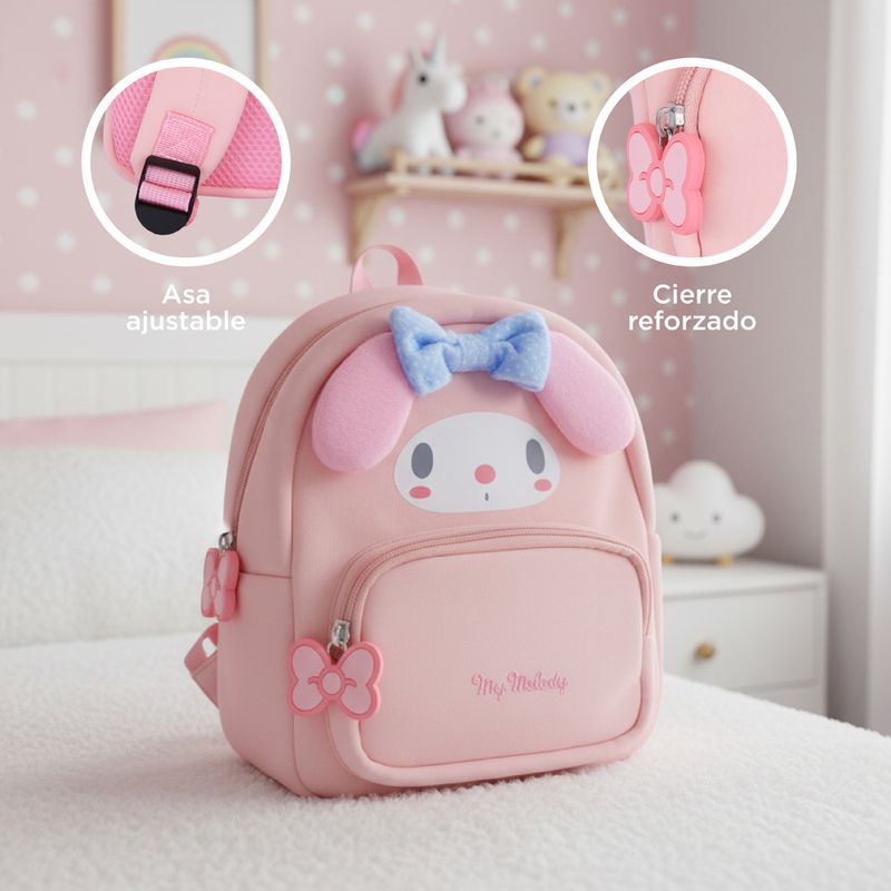 ¡Solo en Miniso encontraras los mejores artículos de la colección Sanrio, esta vez acompañada de la adorable y amigable, My Melody! Adquiere esta linda y exclusiva maleta para niños, la parte superior está equipada con una abertura con cremallera del compartimento principal, artículos de fácil acceso, tela de buceo, ligera y suave, transporte sin estrés y una apariencia moderna y linda que es más popular entre padres e hijos. |Elaborado en materiales de alta resistencia, gran durabilidad y un tamaño perfecto para ti. ¡Sin duda será el regalo perfecto! | ¡No sabias que lo necesitabas hasta que lo encontraste aquí!