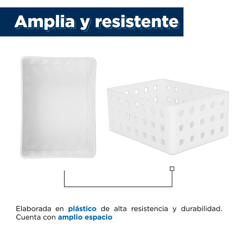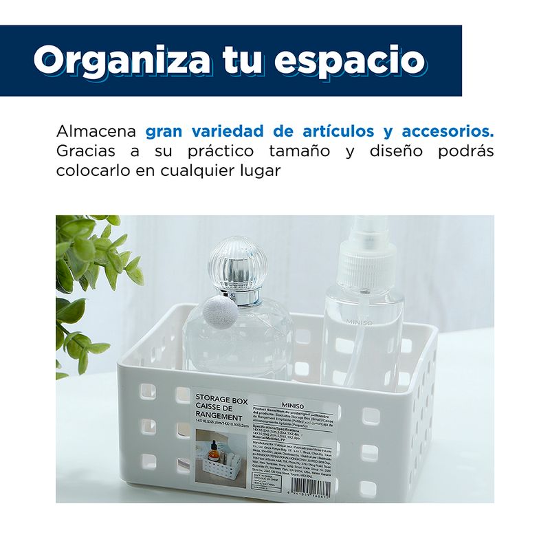 Mantén todos tus artículos en perfecto orden y adorna tu espacio con esta práctica Caja De Almacenamiento Rectangular De Diseño De Malla. Guarda en ella ropa, artículos de belleza o hasta los juguetes de los más pequeños. Su tamaño compacto la hace ideal para colocar en el sitio de tu elección sin ocupar mucho espacio. |Multiusos: Pueden ser útiles en tu baño o habitación. Pruébalas y organiza tus artículos con esta linda caja de almacenamiento, que sin duda no debe faltar en ningún hogar. Puedes guardar productos de belleza e higiene, toallas y todo lo que se te ocurra. |Prácticas: Fácil de transportar, portátiles, la caja de almacenamiento está equipada con asas. Esto permite moverlas con facilidad y tener un mejor agarre. |Visibles: Al tener espacios abiertos te permite tener un mayor control de tus cosas, ya que el contenido queda visible en todo momento, así puedes usar tus artículos con mayor practicidad. |Diseño funcional: Ideal para guardar tus artículos personales, toalla o ropa con un toque de buen gusto. Sin duda le encantará a chicos y grandes. |Resistente: Creada con materiales resistentes para que puedas cargarla a todos lados y sin preocuparte de dañarla, ya que cumple con los más estrictos estándares de calidad. Modo de uso: Caja multiusos.