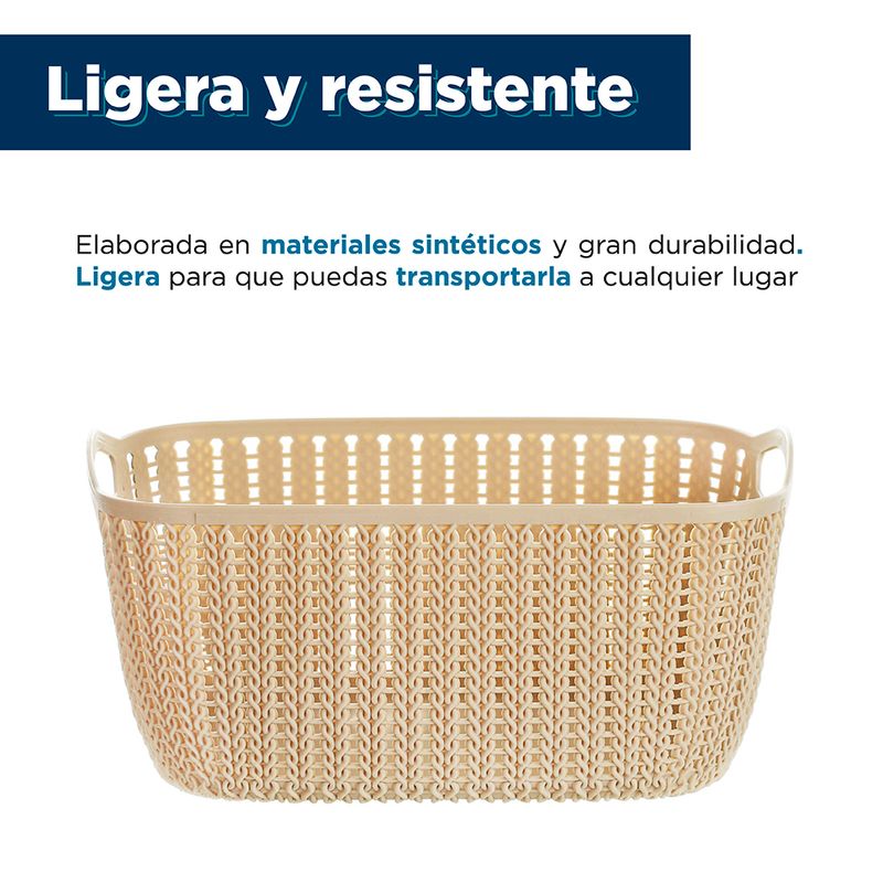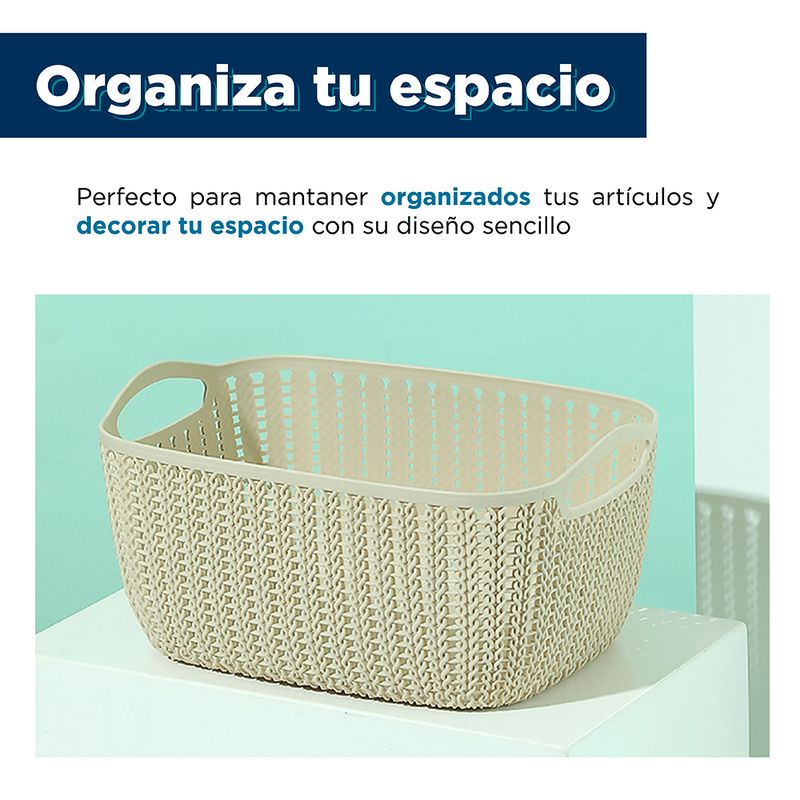 Dale un toque de elegancia y orden a tus espacios con esta bonita Caja De Almacenamiento Rectangular Con Textura De Trenzado, en color Beige que Miniso tiene para ti. Es un artículo grande, espacioso y práctico para guardar múltiples objetos, tú decides el uso que quieras darle. Está hecha con materiales de calidad para dar máxima resistencia y mayor duración, su textura le da un toque elegante para lucir espectacular en cualquier espacio. |Multiusos: La ventaja de tener un contenedor de este tipo es que puedes guardar múltiples objetos, como cosméticos, artículos de papelería, artículos personales, prendas de vestir y mucho más. |Orden: Podrás mantener tus objetos muy bien organizados dentro de este contenedor. Cuenta con espacio amplio para que puedas encontrar fácilmente lo que necesitas. Es ideal para el hogar o la oficina. |Funcional: Esta caja te permite guardar múltiples objetos, prendas de vestir, sábanas, toallas, e incluso objetos personales. Es ligera y cuenta con asas resistentes en cada lado para transportarla fácilmente. |Practicidad: Es un artículo de almacenamiento de gran calidad que brinda facilidad de uso. Por su tamaño, diseño y forma se adapta perfecto a tus necesidades. Además, es fácil de transportar. Modo de uso: Caja multiusos.