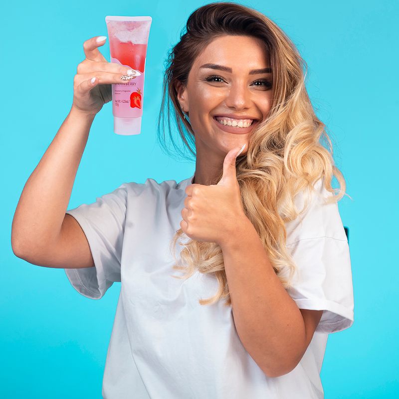 Contiene extracto de fresa. Sus micropartículas ayudan a remover las células muertas para mejorar la textura de la piel, haciéndola lucir suave y radiante. 120 g. Certificado Invima