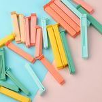 Contiene 24 piezas. Modo de uso: Es adecuado para sellar bolsas y para guardar snacks no terminados. Precauciones: Fabricado en plástico. Mantener alejado del fuego. Mantener alejado de los niños.