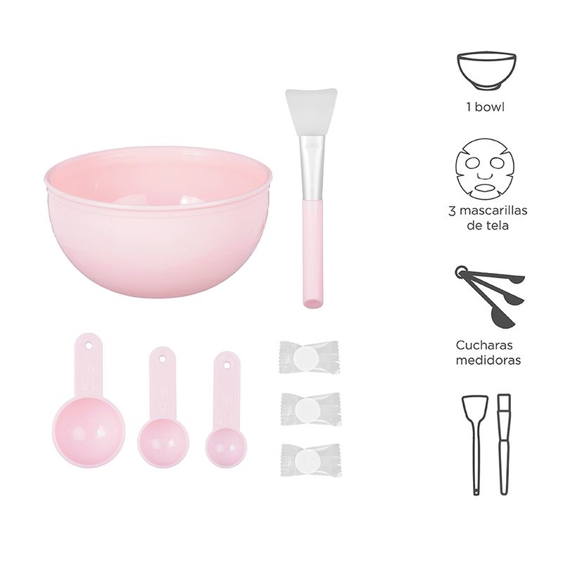 Prepara tu spa en casa con este increíble set de mascarilla, incluye diferentes tamaños de cuchara medidora y espátula para colocarla en tu rostro, es hora de consentirse. Instrucciones de uso: