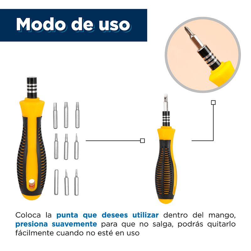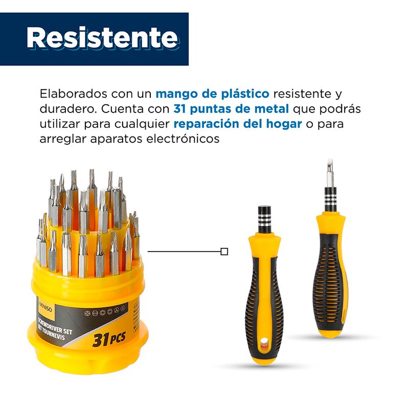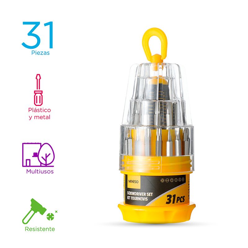 1. Con un aspecto moderno, tiene múltiples funciones y se adapta a diversas situaciones de reparación, cómodo de usar.2. El acero de aleación con alto contenido de carbono es resistente y duradero.3. El mango antideslizante de dos colores cumple con las condiciones de diseño ergonómico y es liviano y cómodo al tacto 4. La caja de plástico con forma de pagoda se ve bonita y es conveniente para almacenar. Modo de uso: Usar para reparar o ajustar elementos del hogar. Precauciones: Mantener alejado del agua. Mantener fuera del alcance de los niños. No hacer contacto con la electricidad. Mantener fuera del alcance de los niños. Riesgo de asfixia y cortaduras.