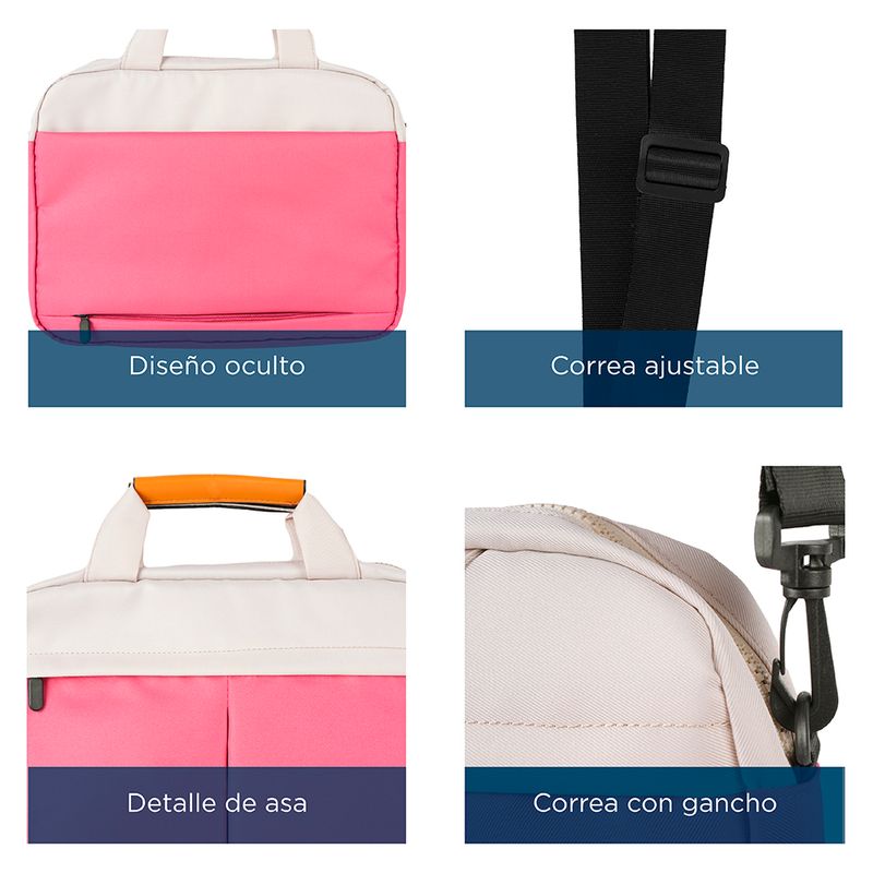 Morral Escolar, Cruzado, Rosa Morral Cruzado en color rosa con doble tonalidad. | Con correa ajustable para hombro. | Ideal para una computadora portátil de 14 pulgadas. | Doble asa en parte superior con detalles en material tipo cuero. | Los bolsillos exteriores tiene un practico diseño oculto, son amplios lo que te permitirá guardar otros accesorios. Modo de uso: Guardar y cargar elementos de fácil acceso.