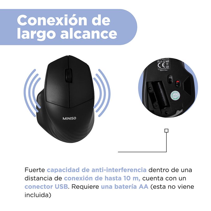 Mouse Inalámbrico Ergonómico Serie Miniso Negro