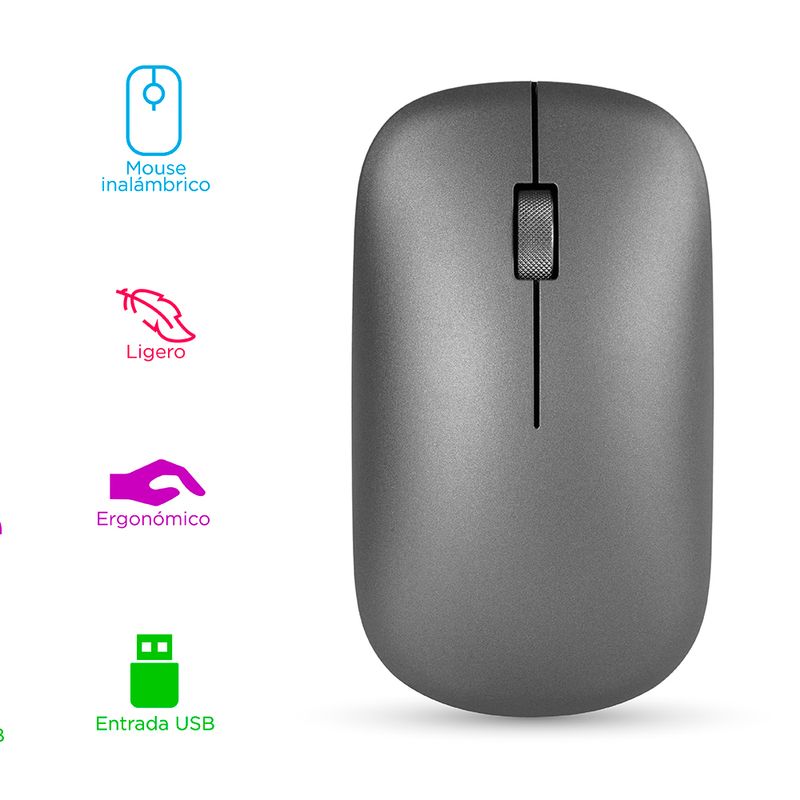 Mouse Inhalambrico, Estilo Metalico 2.4G, Negro, Modelo de moda Para operar con la mano izquierda o derecha Transmisión de 2.4G Hz Receptor nano Botón de imán Aspirado Rueda de desplazamiento de aluminio 1600 DPI. Instrucciones de uso: